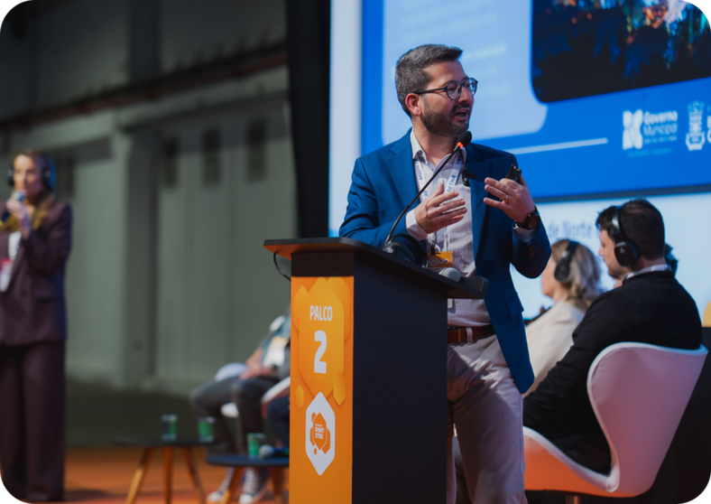 Mais do que assistir, você colabora, aprende e transforma a forma de fazer cidades inteligentes. O palco é só o começo – a verdadeira transformação acontece no compartilhamento de ideias e no fortalecimento de parcerias.